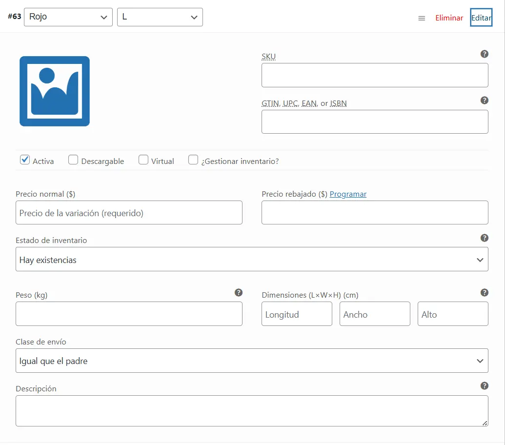 - Puedes gestionar su SKU y su stock de forma independiente.